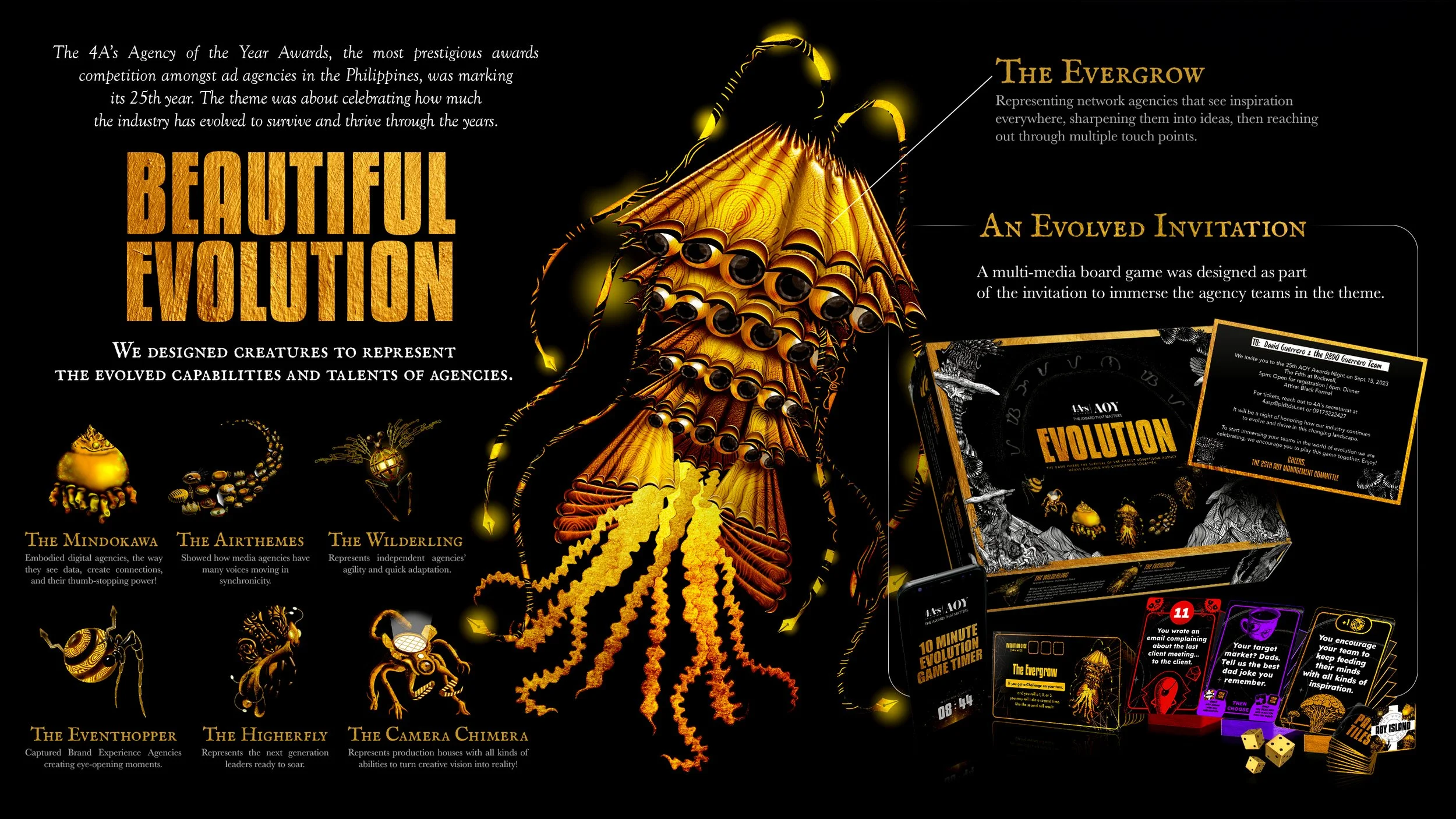 As an invitation to all creative agencies, we transformed these creatures into a board game. We wanted the invitation itself to embody evolution, immersing agency teams before and after the actual event.
