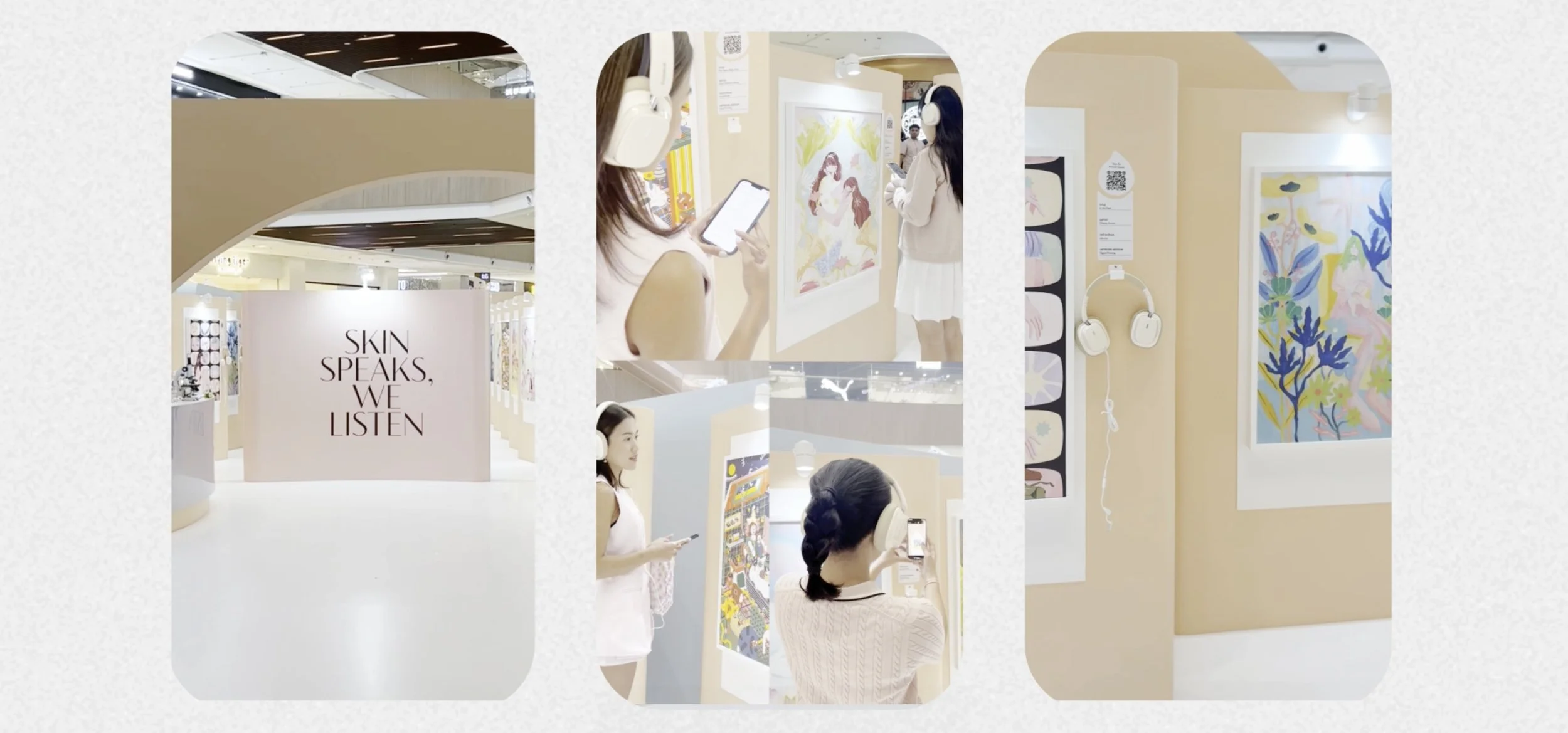 Every artwork was created by a female artist, inspired by her own skin, womanhood, and lived experience. Each artwork features a QR code, allowing guests to listen what the skin has to say.